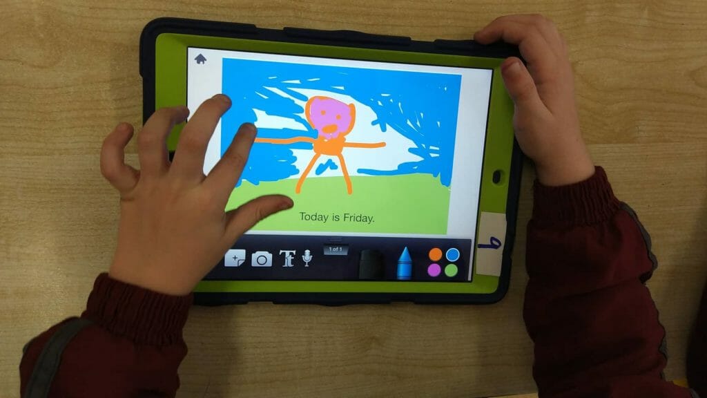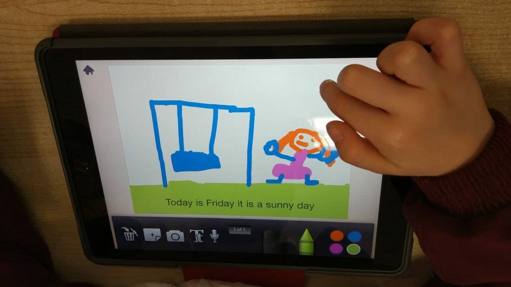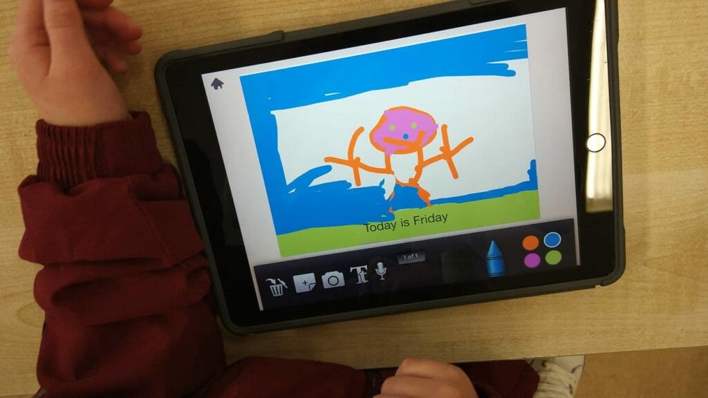 On Friday Senior Infants had a great fun learning how to use ”Story Creator” App. Our pupils learned how to use modern technology to write a good story and how to illustrate a book. iPad’s were used for typing and drawing. We learned how to write capital letters on the keyboard and that the long key is called space bar. We can use it for our finger space between words. We had a very creative day while learning – have a look !!!